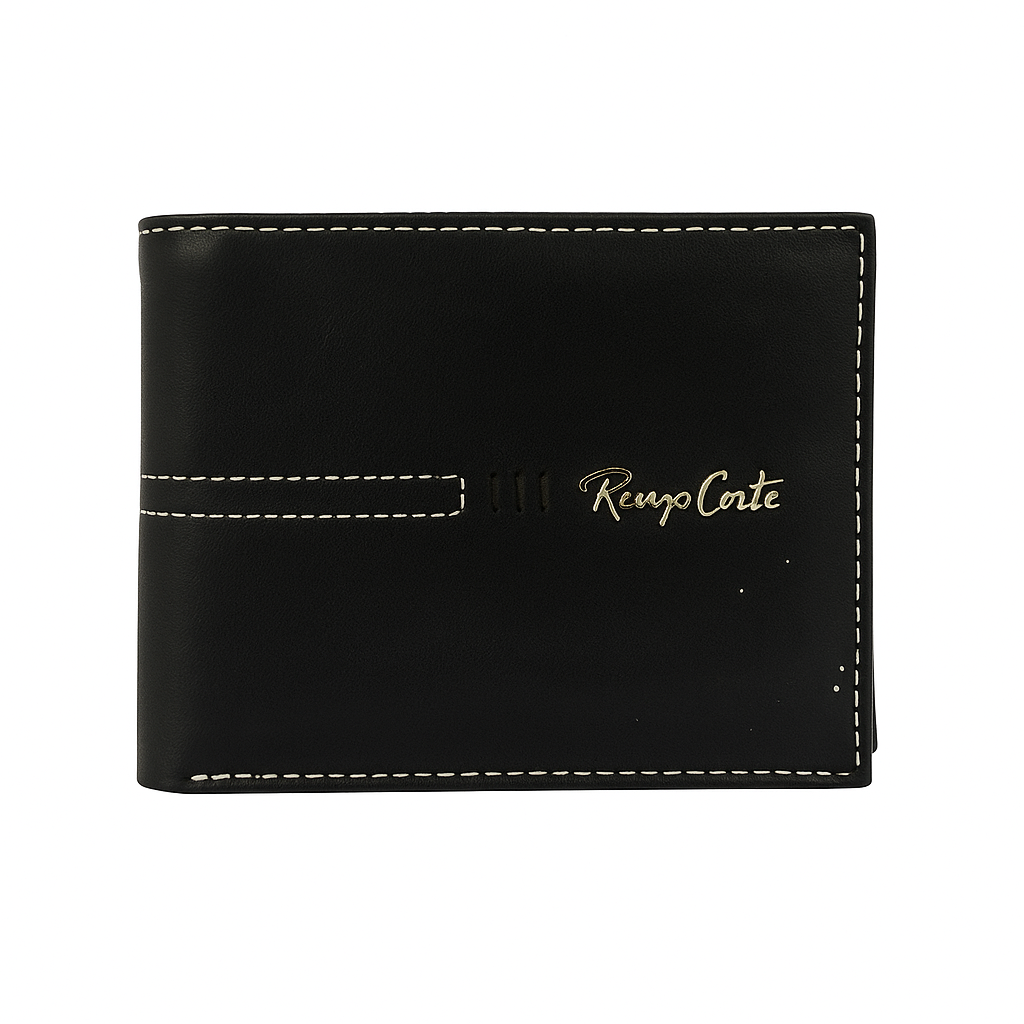 🖤 Billetera Renzo Costa – Cuero Negro con Detalle de Costura Blanca