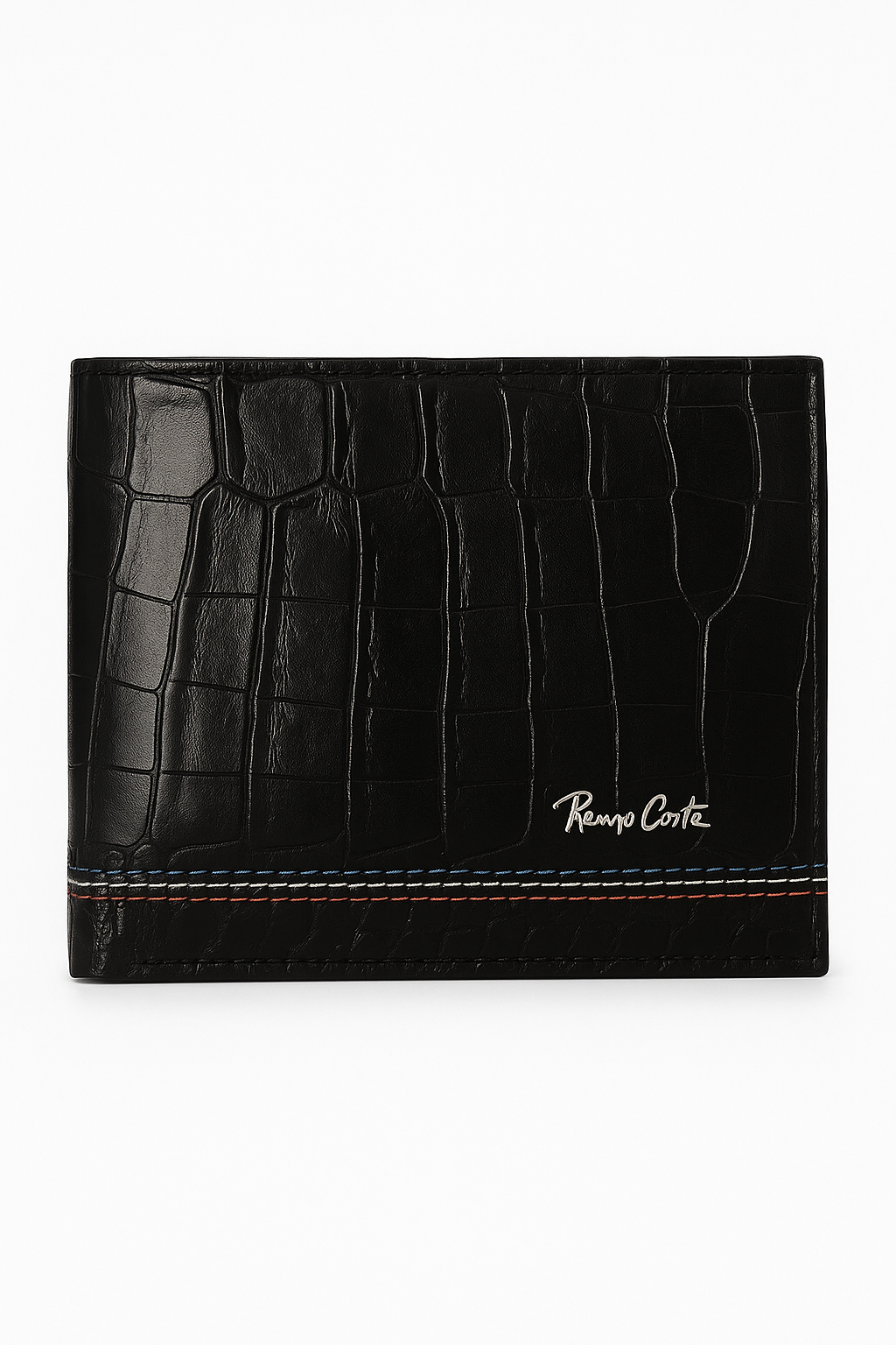 BILLETERA RENZO COSTA NEGRA / TEXTURA TIPO COCODRILO