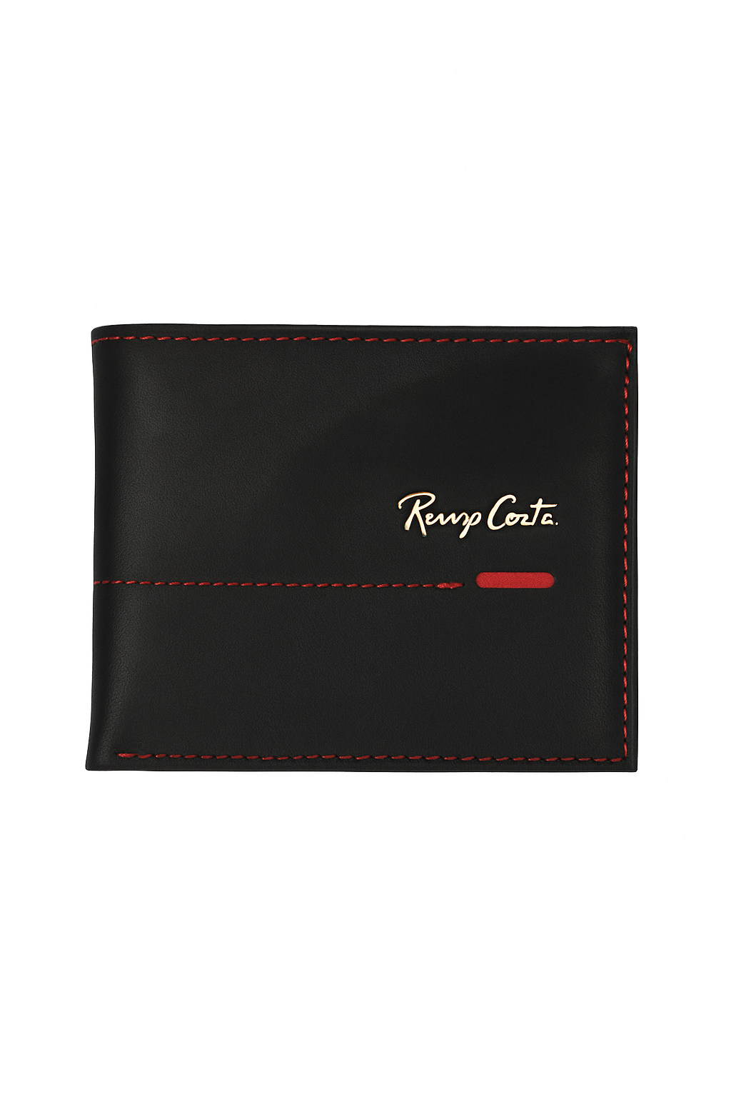 Elegancia y distinción en cada detalle. Esta billetera está elaborada en cuero legítimo negro, con costuras en hilo rojo que aportan un contraste moderno y sofisticado. Su diseño minimalista resalta el logo dorado Renzo Costa, símbolo de calidad y estilo peruano.