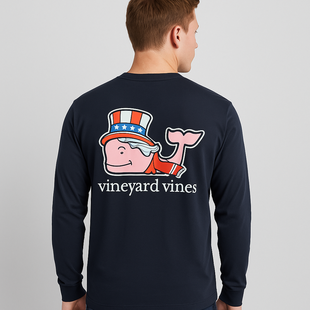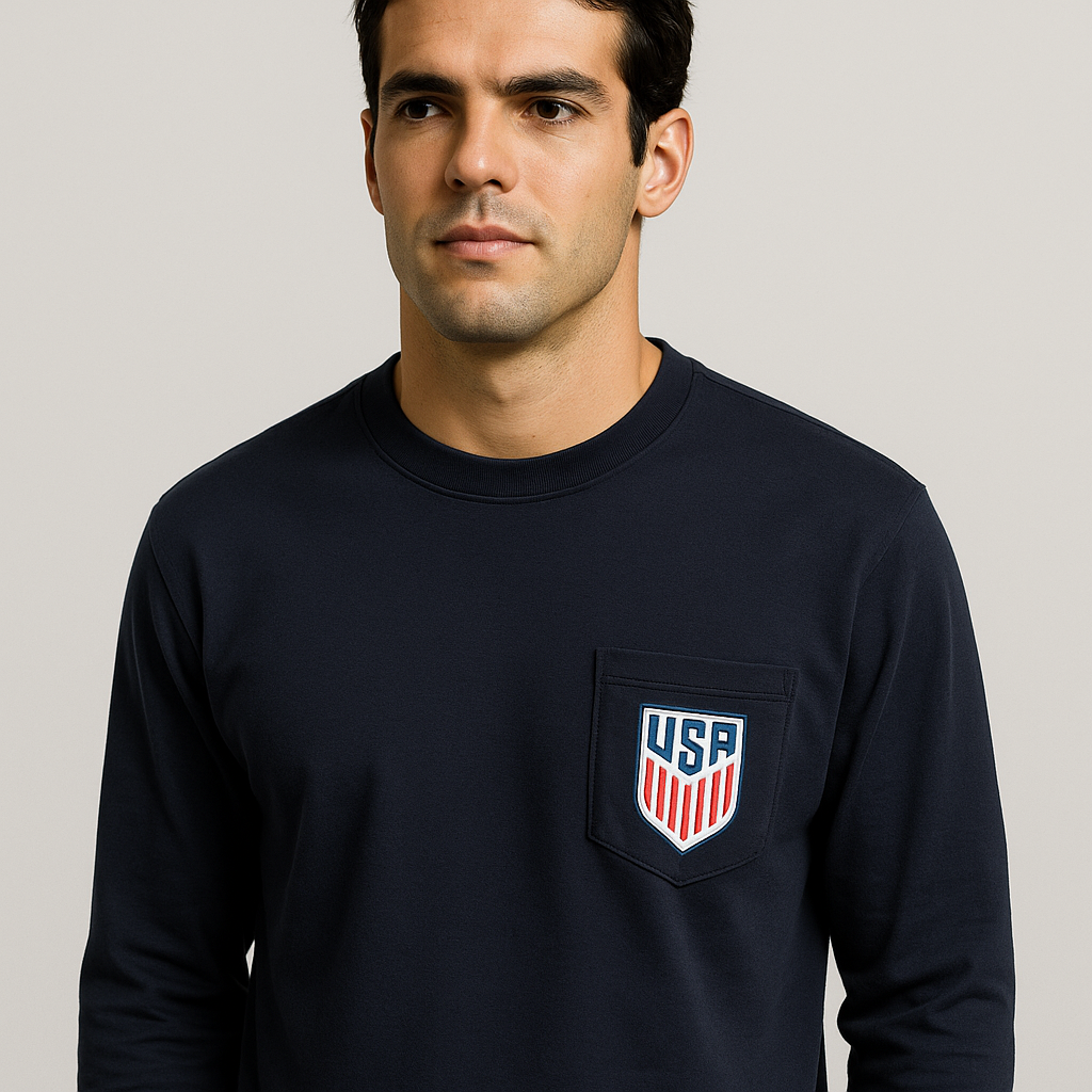 Luce un estilo limpio, moderno y auténtico con nuestra manga larga Vineyard en azul marino 🌌. Su diseño incluye un bolsillo con el escudo USA 🇺🇸 que le da un toque distintivo y deportivo, perfecto para destacar sin esfuerzo. Está confeccionada en algodón pima fresco 🧵🍃, una tela premium conocida por su suavidad, durabilidad y comodidad absoluta.