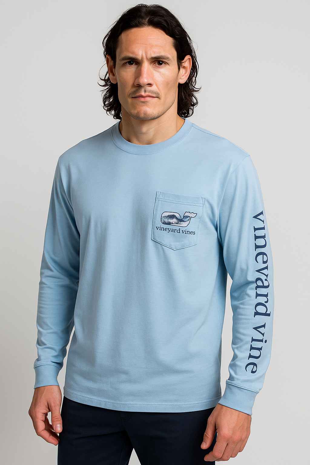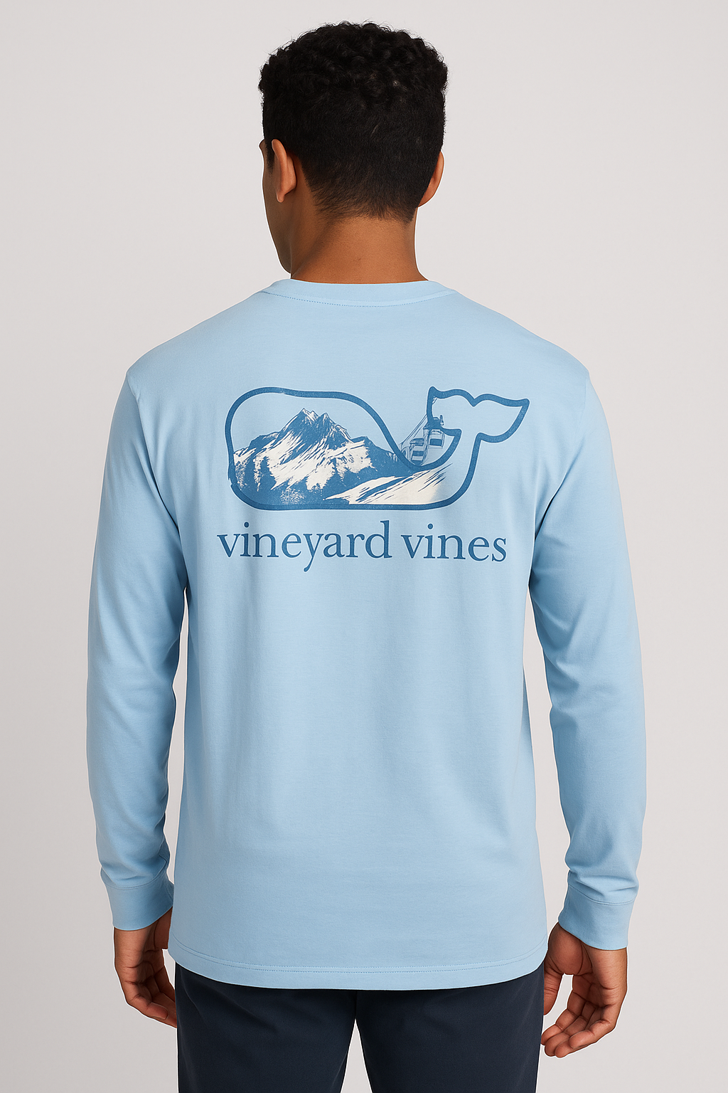 💙🏔️👕 Manga larga Vineyard Vines celeste edición Montaña, confeccionada en algodón pima premium que ofrece suavidad extrema, frescura y comodidad durante todo el día 🌬️✨; diseño especial con bolsillo frontal y la icónica ballena llevando dentro un paisaje de montañas, logrando un estilo único, limpio y moderno 🐋🏔️💙; ideal para combinar con jeans, joggers o shorts y lograr un outfit relajado, fresco y con ese toque aventurero que destaca en cualquier ocasión 🔥🙌