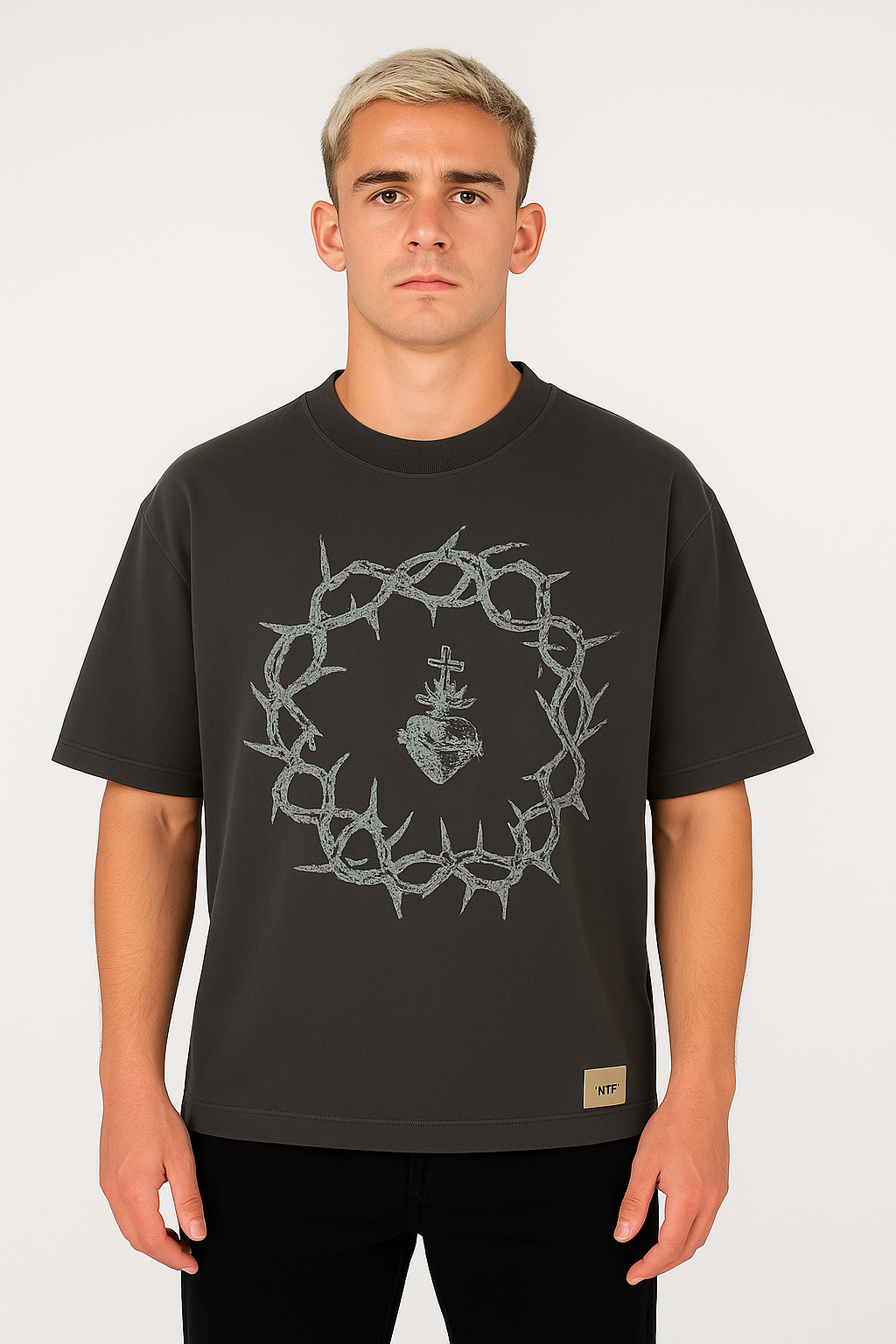 🩶 Polo BoxyFit NTF / Plomo / Corona de Cristo ✝️