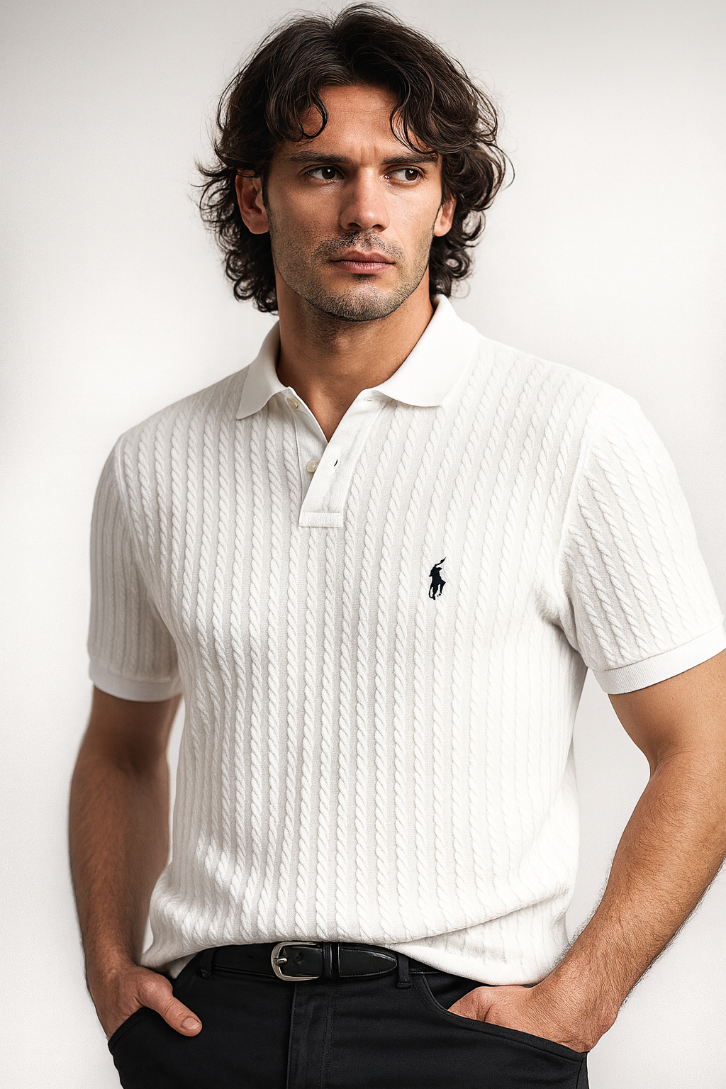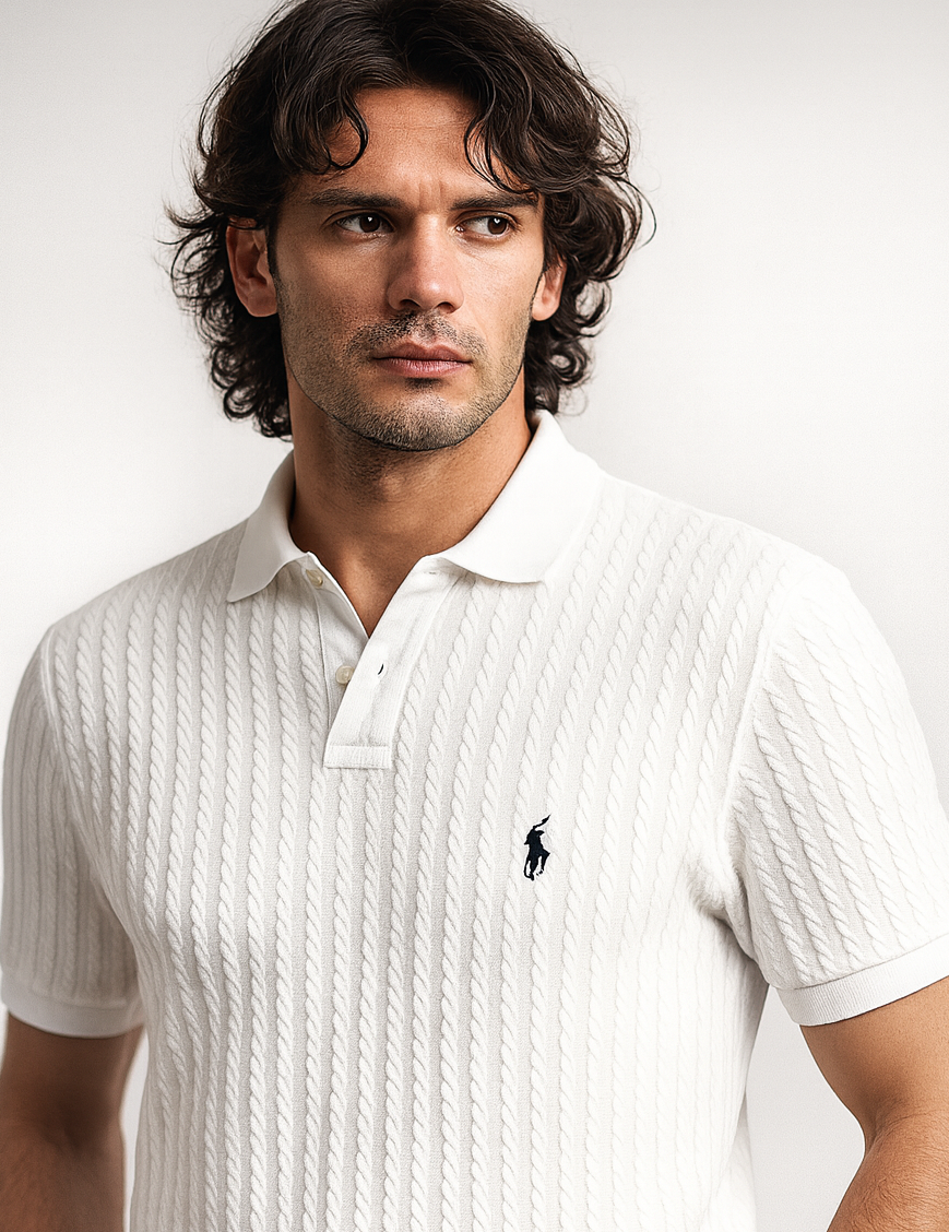 Este camisero Ralph Lauren es la definición de clase y calidad premium. Confeccionado en tejido piqué blanco de alta gama, ofrece una textura elegante, suave y fresca que brinda comodidad durante todo el día 💯👌. Su acabado limpio y su icónico logo bordado elevan cualquier outfit, dándole un look fino, moderno y atemporal.