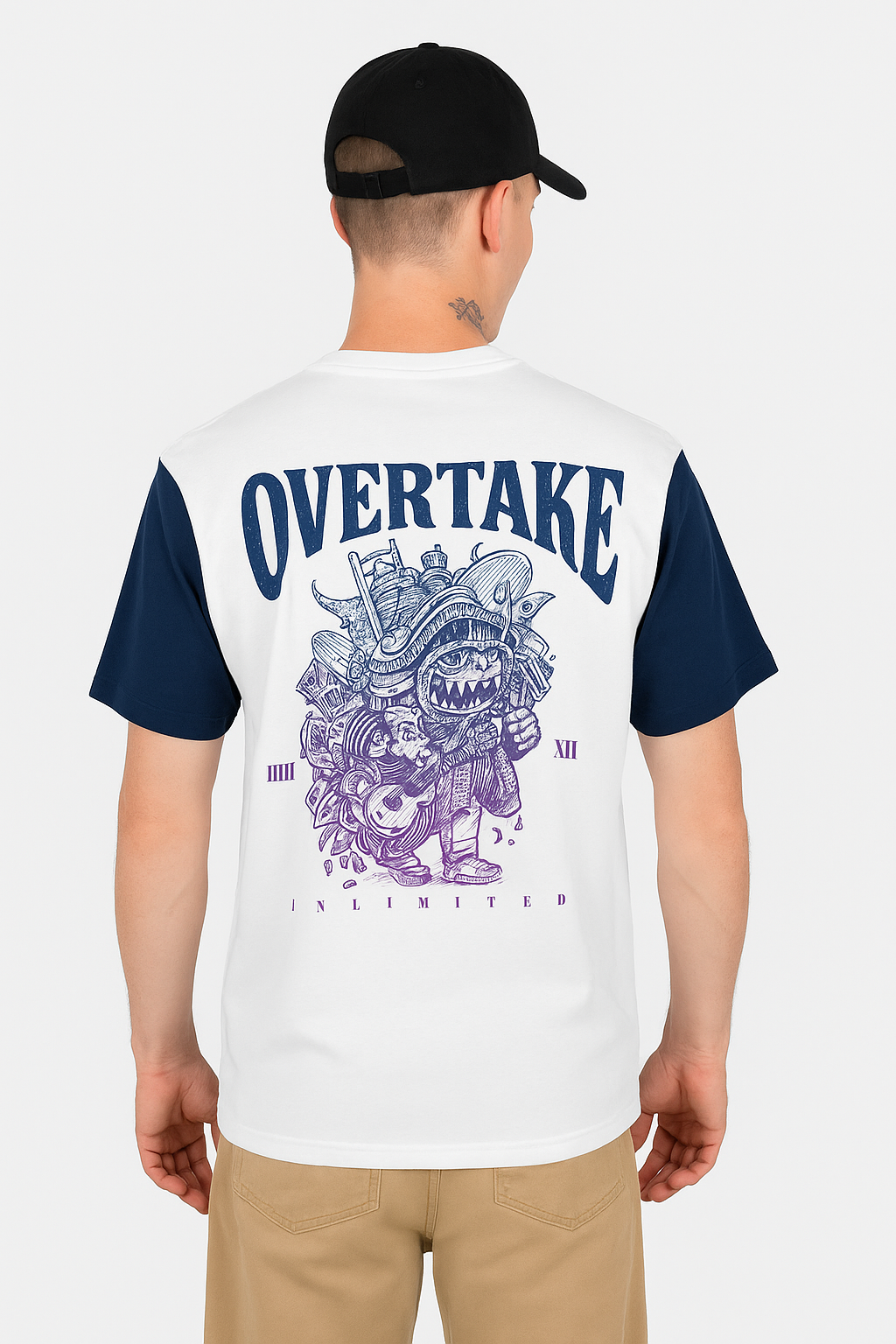👕 Polo Overtake Unlimited 💥 corte clásico, confeccionado en algodón grueso y suave de alta calidad 🤍💪. Su diseño combina blanco con mangas azul marino 💙, brindando un estilo versátil y moderno. En el pecho luce el logo OVERTAKE Unlimited 🔥 con estampado en tonos azul y púrpura, reflejando actitud y estilo urbano 😎. Perfecto para cualquier ocasión — cómodo, resistente y con un fit relajado que se adapta a tu día a día 👌✨.